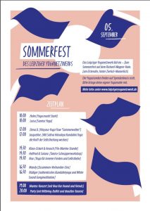 Das Leipziger Yoganetzwerk läd ein zum Sommerfest im Richard-Wagner-Hain (am Elsterufer, hinter Zierlich-Manierlich). Über den ganzen Tag Yogastunden und abends Mantrasingen und Tanzen. Wir treffen uns unterm Sternenzelt und drum herum. Bei schlecht Wetter bietet unser Sternenzelt schutz für 15 – 30 Leute.